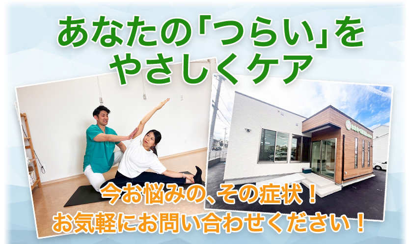 当院では、症状の改善はもちろん、再発予防や日常生活の改善までを見据えた”トータルケア”を大切にしています。